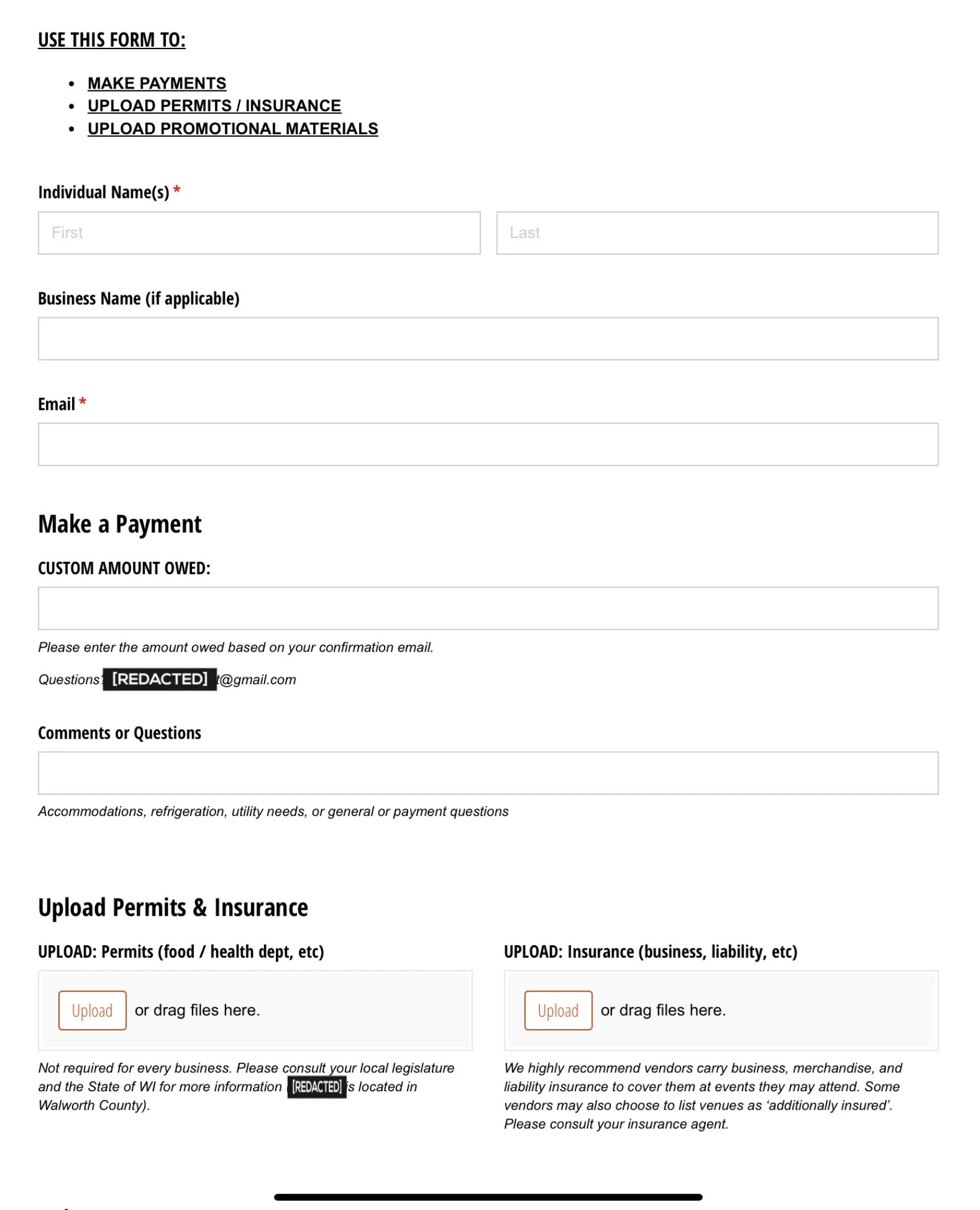 I created a vendor-facing application and onboarding system for a small festivals and events team, to be utilized manually by coordinators who receive x2-4 applications per day for a few months leading up to each event. This was designed to reduce confusion and streamline approval workflows for this music and event venue that dislikes automations and has a large outreach base, allowing for inquiring vendors to have access to information and applications in a timely and self-starting manner.