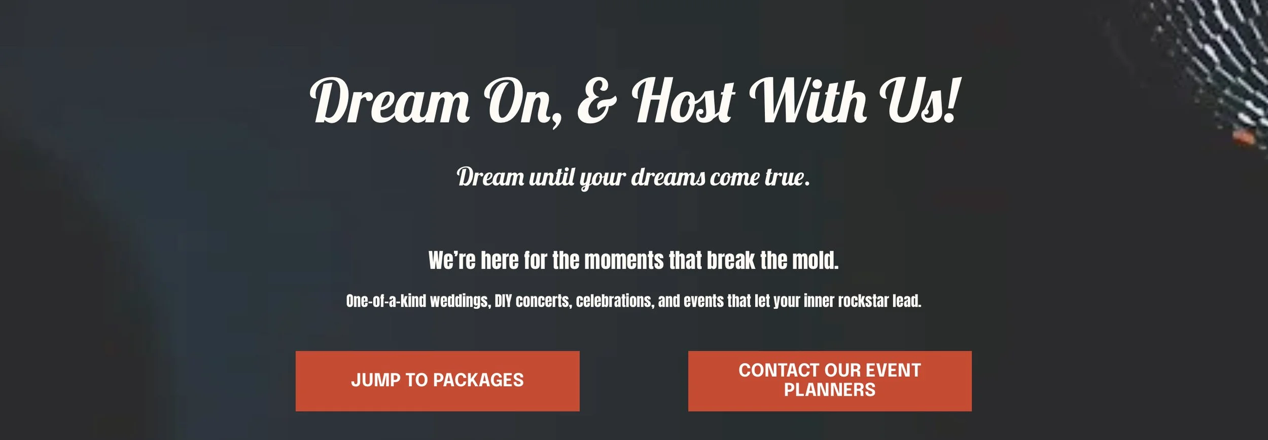 One-of-a-kind weddings, DIY concerts, celebrations, and events that let your inner rockstar lead.