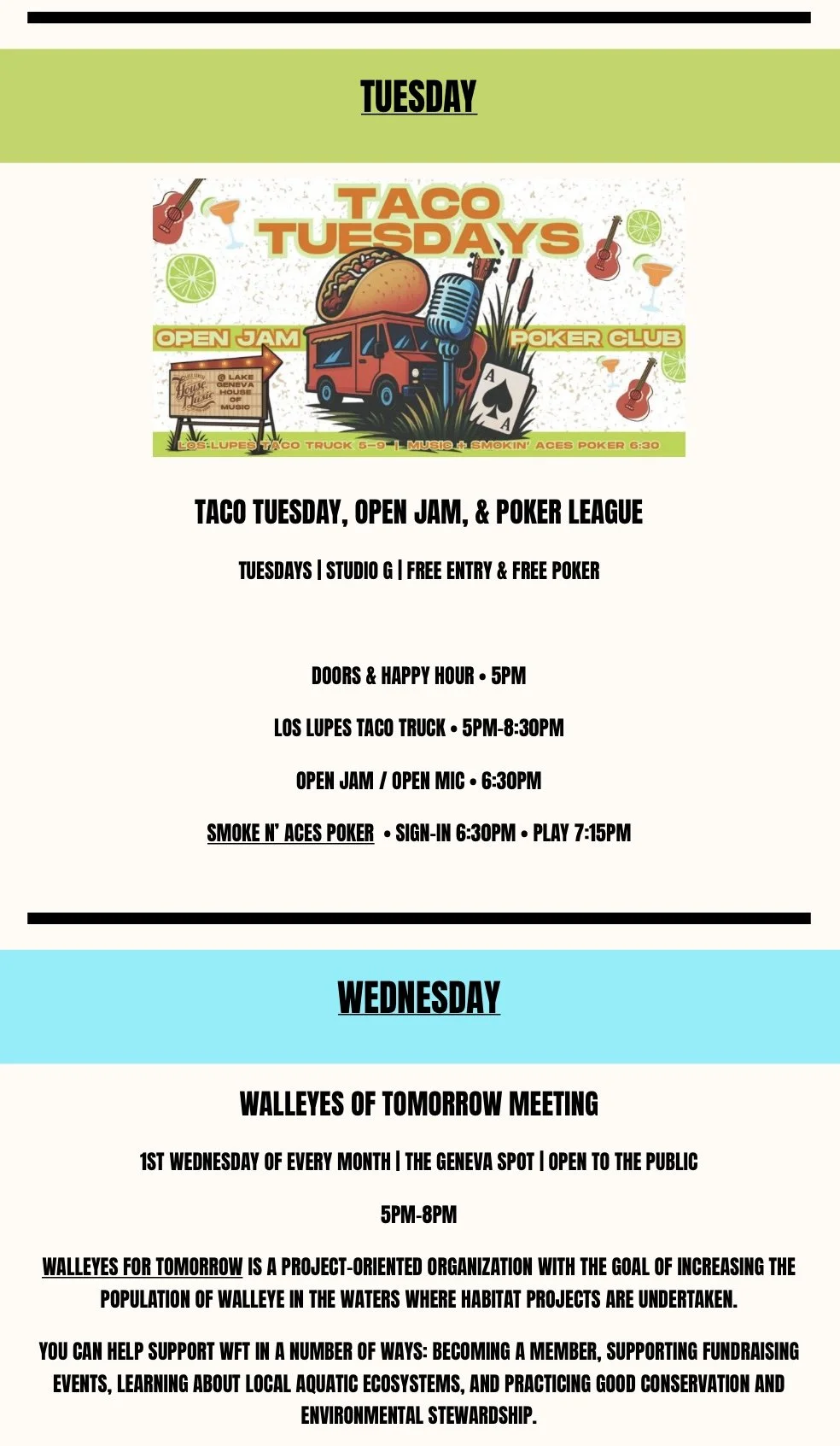 [WEEKLY LNIEUP AND DETAILS BELOW]